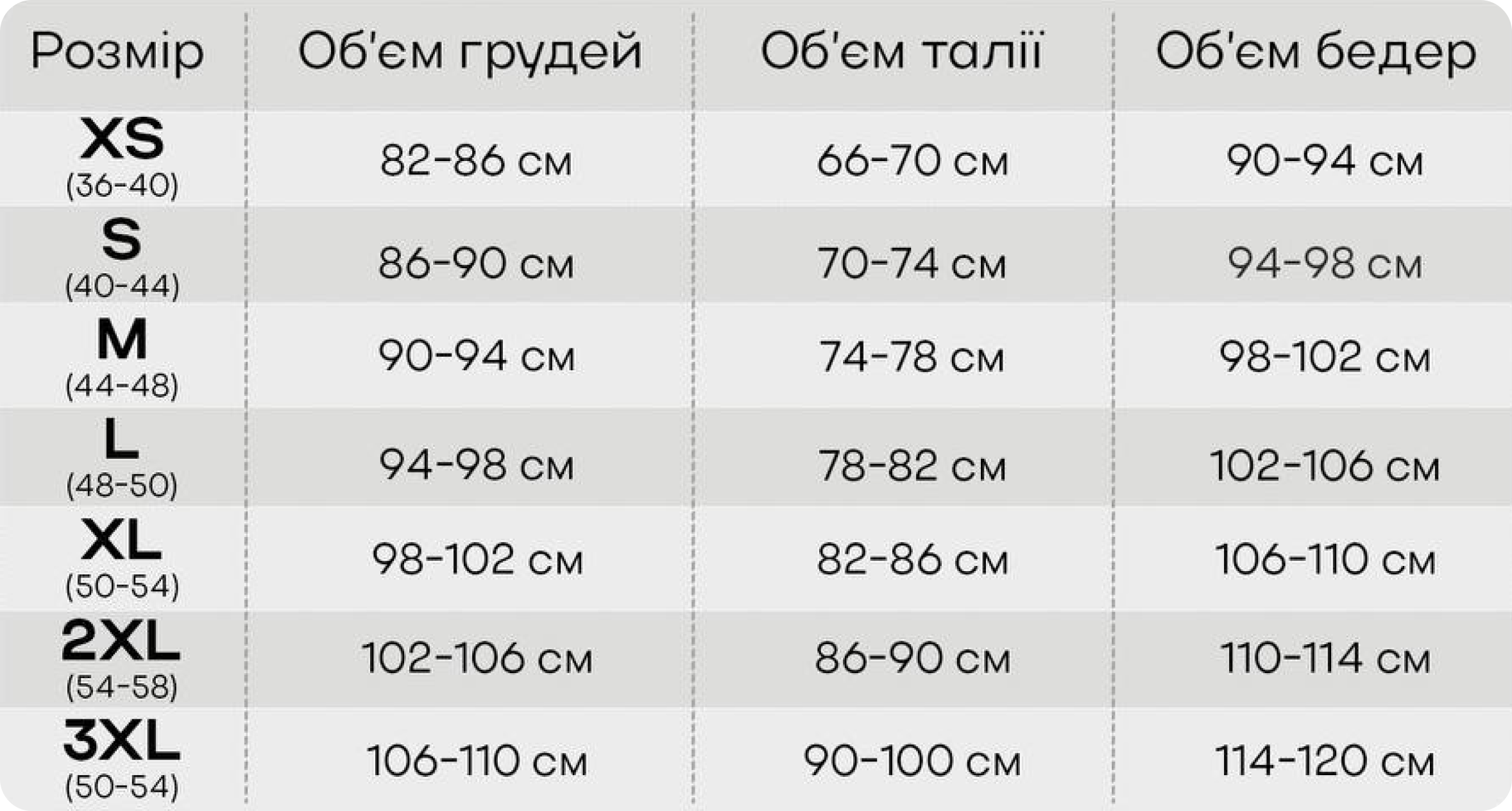 Розміри: від XS до 3XL – європейські розміри. Ви можете бути впевнені, що знайдете свій ідеальний варіант, без ризику невідповідності розміру.
